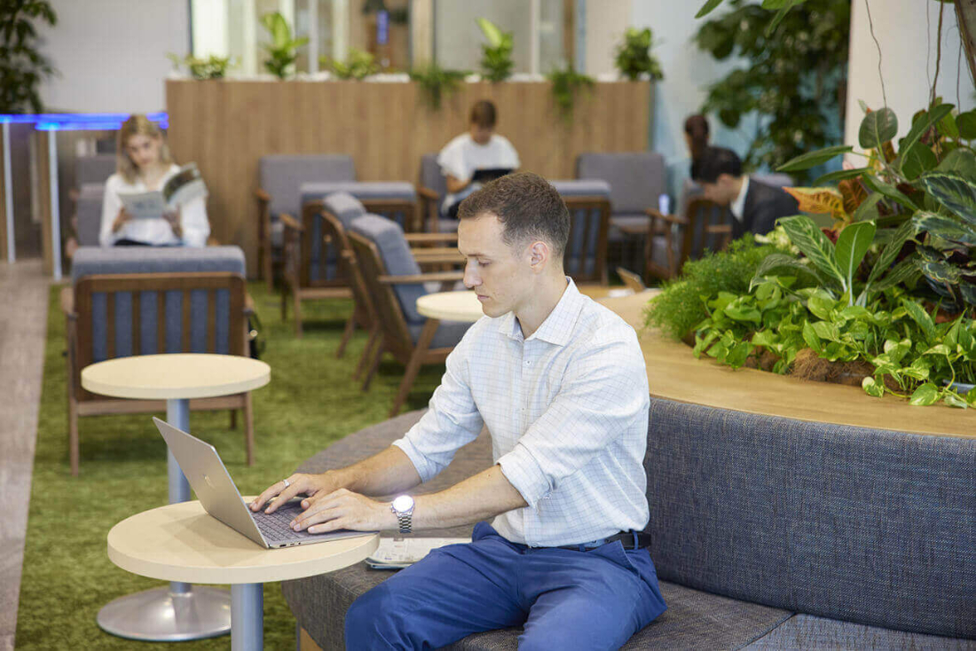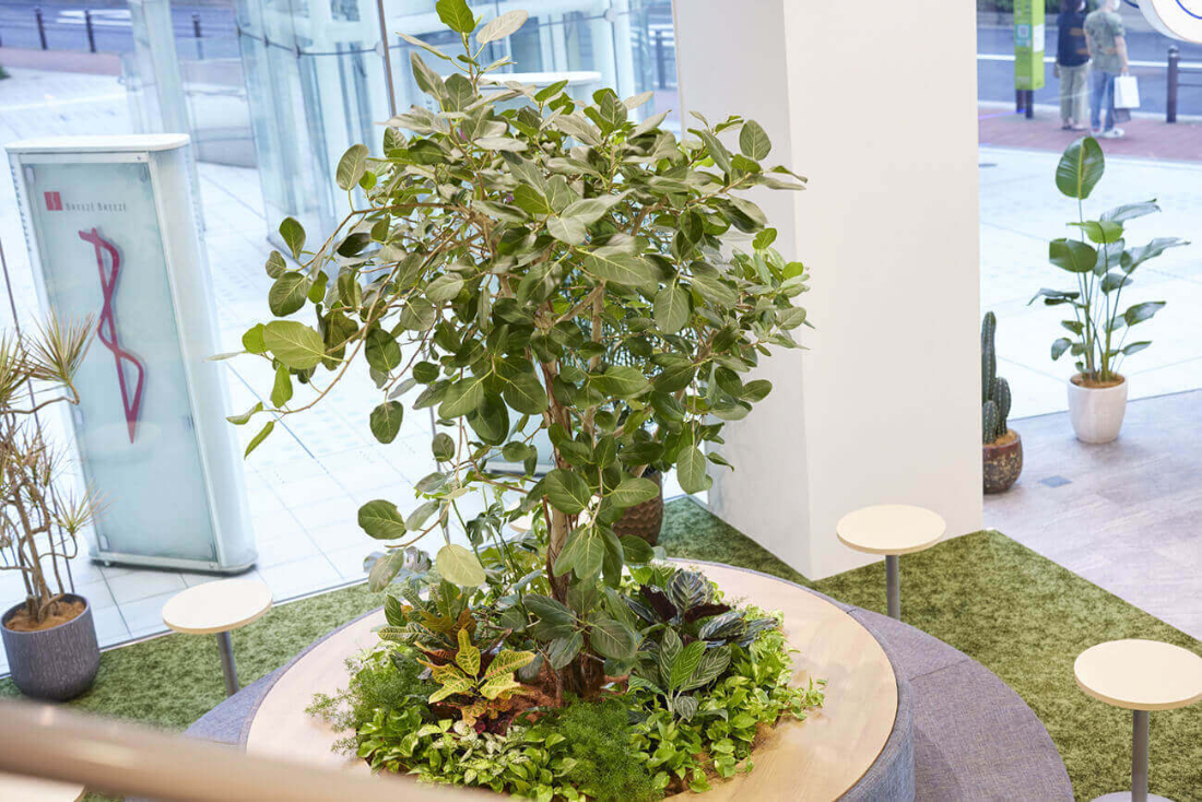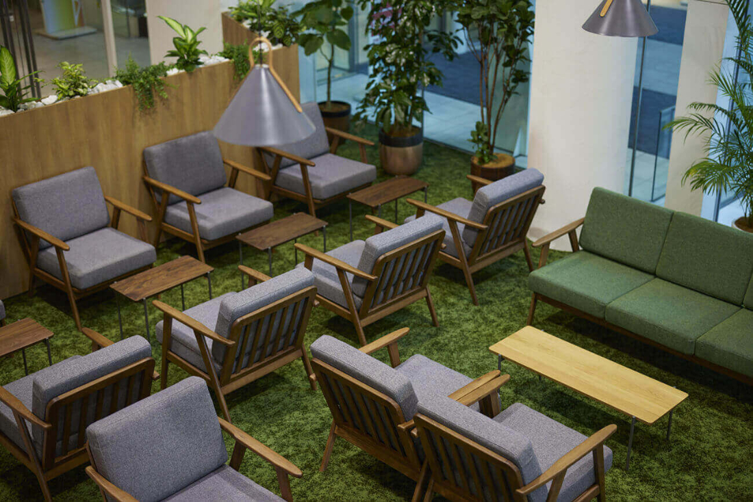 当施設のラウンジは、「人間は本能的に自然とつながりたい欲求がある」という概念からうまれた、バイオフィリックデザインにより設計しております。
