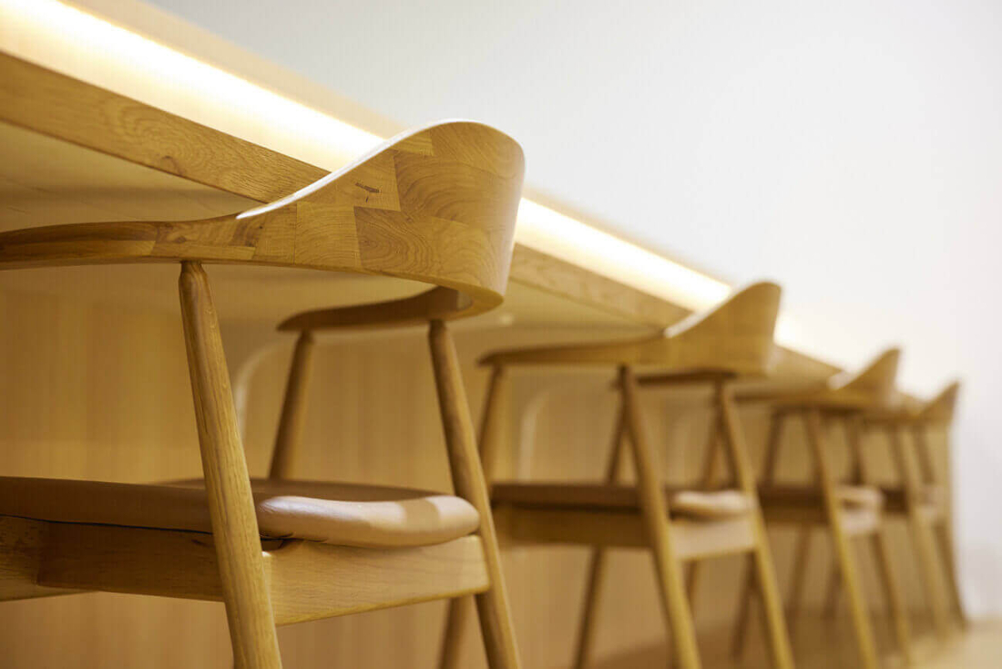 バイオフィリックデザインの考えを取り入れた「五感」を刺激する空間づくりにより、自ら選択しその時々の気持ちをON/OFFできる要素を配置。「人間は本能的に自然とつながりたい欲求がある」という概念からうまれた、バイオフィリックデザインによって設計された自然のやすらぎが再現されたワークプレイスです。